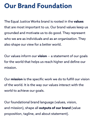 Equal Justice Works needed a vision, a mission, and a whole brand language system everyone could agree on internally and everyone could understand externally.